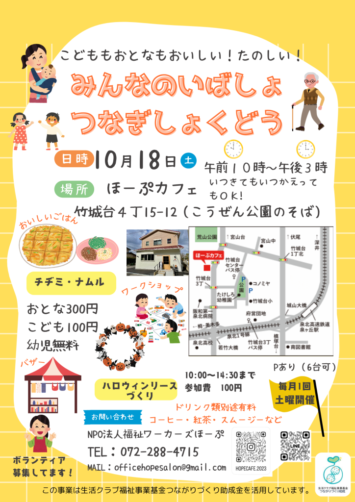 10/18(土)みんなのいばしょつなぎ食堂を開催します!