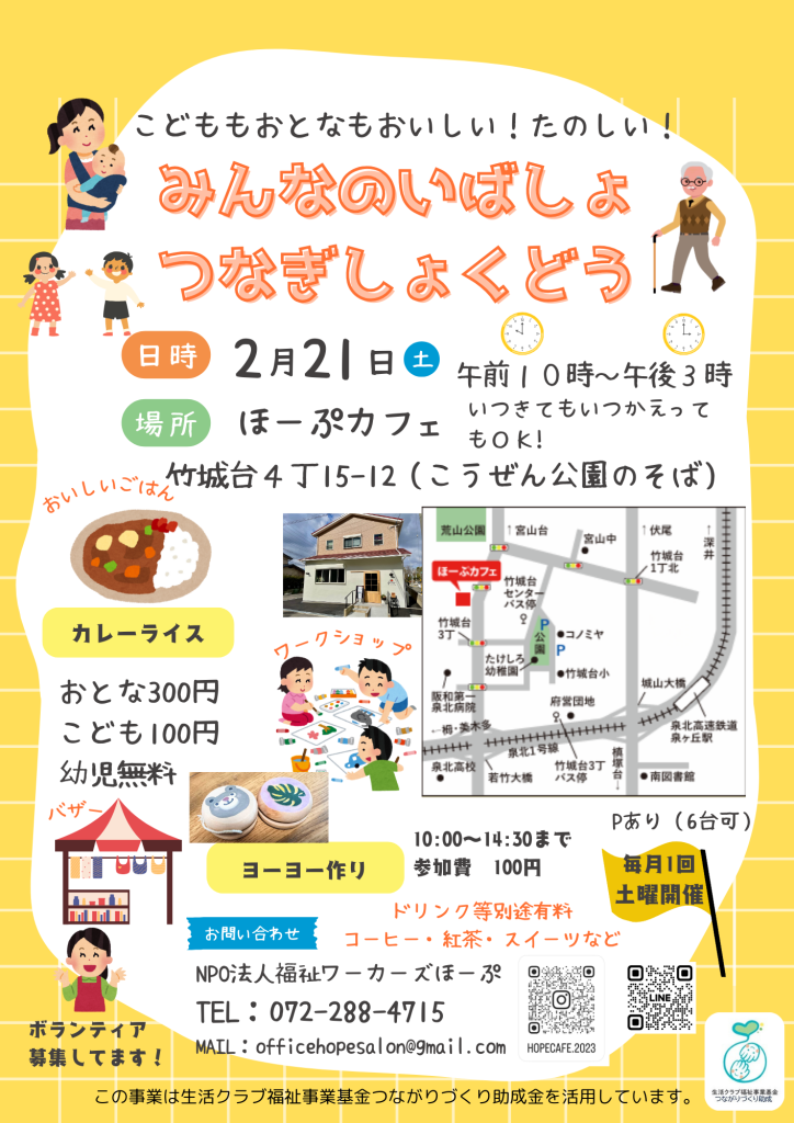 2/21(土)みんなのいばしょつなぎ食堂を開催します!