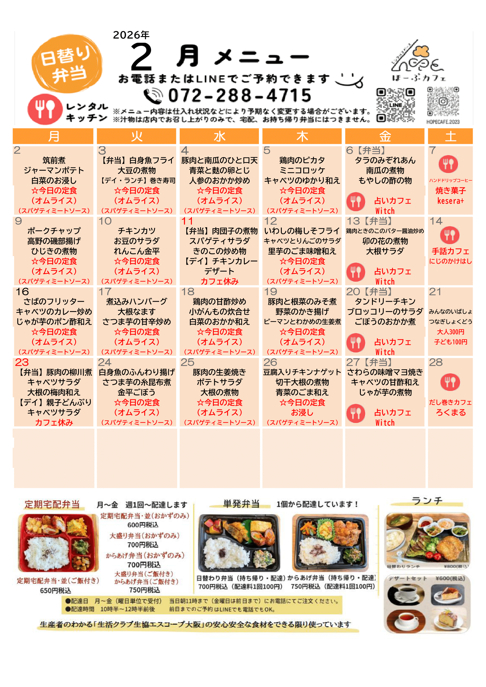 ほーぷカフェ「2月メニュー表」を発行しました。