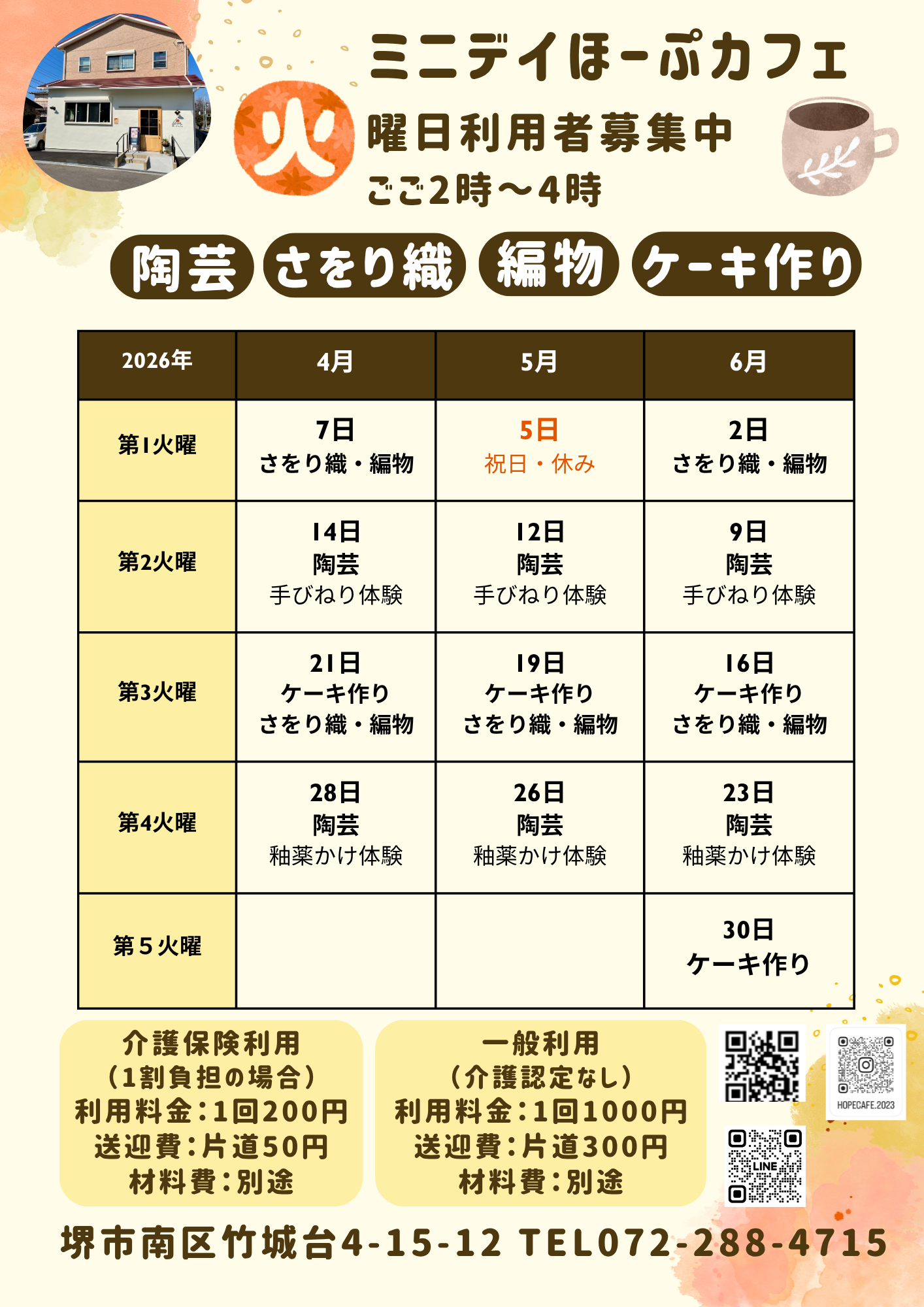 ミニデイほーぷカフェ火曜日利用者募集中!要支援対象の短時間デイサービスですが、一般の方のご参加歓迎です!